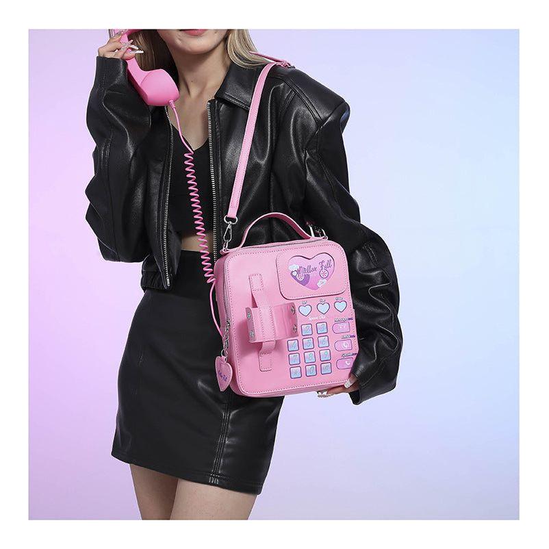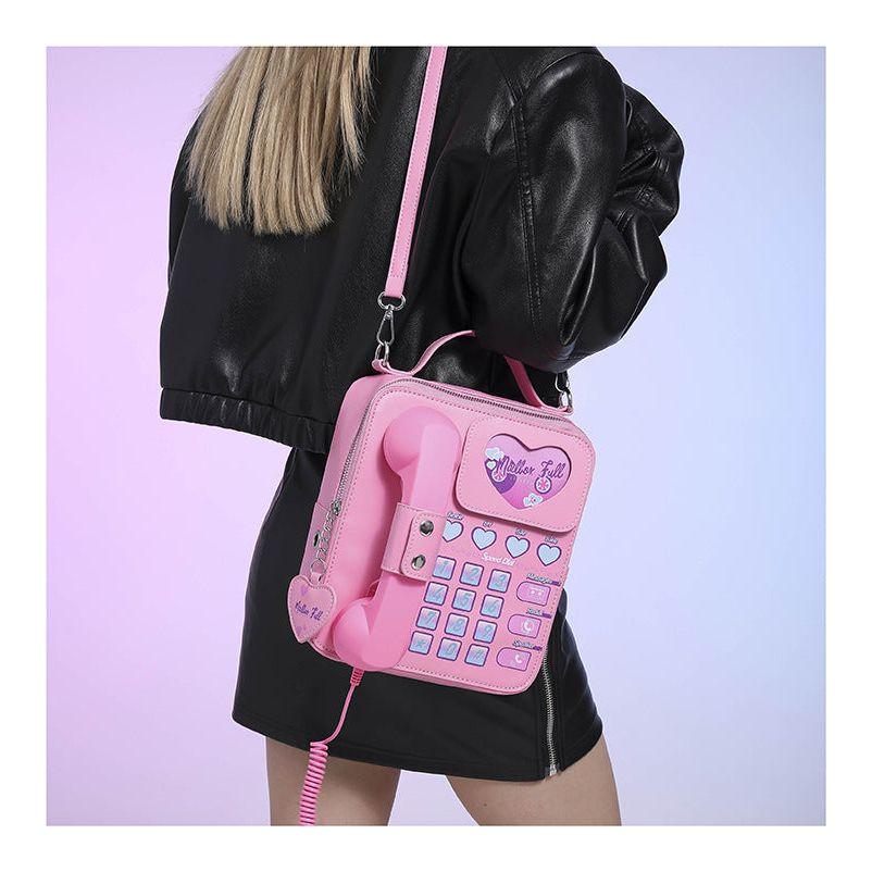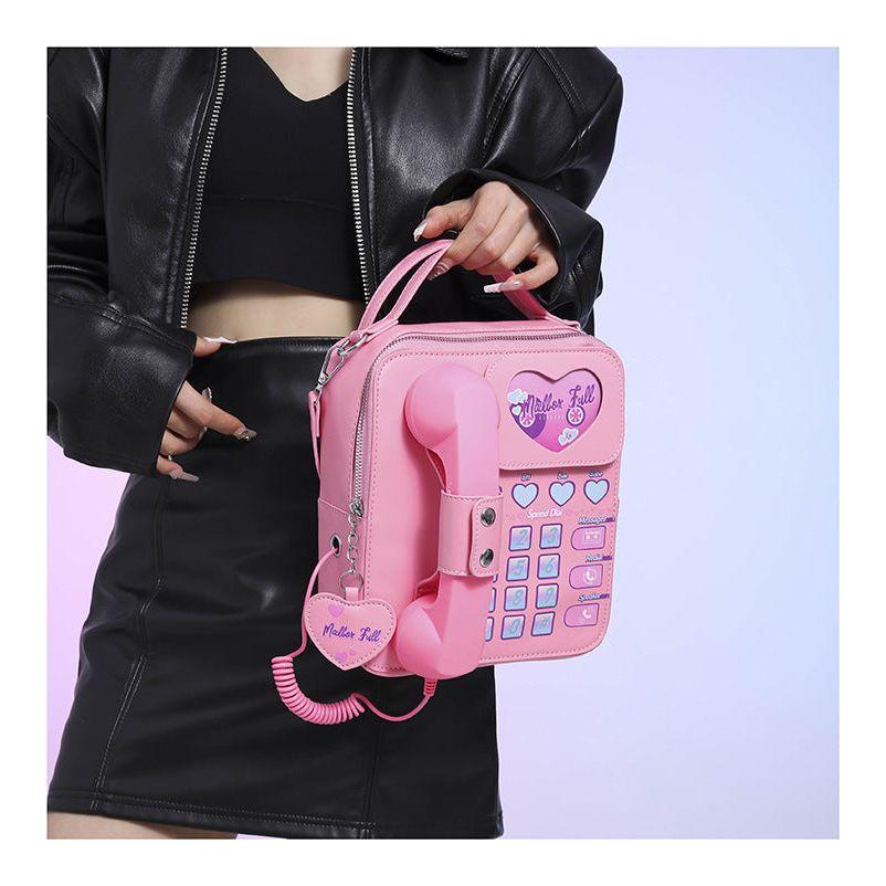 Pink Sweet Girl Creative Crossbody Bag with Telephone Design, PU Material, Lightweight and Unique