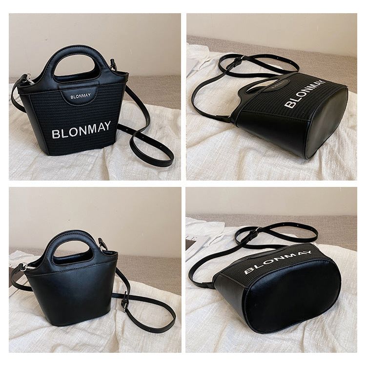 Discover the perfect blend of style and functionality with the BLONMAY Bucket Handbag. Crafted from high-quality PU leather, this chic handbag features a sleek black finish with a subtle woven texture and the iconic "BLONMAY" logo boldly displayed in white for a touch of elegance.