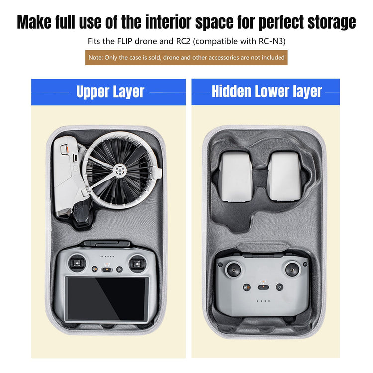 • Designed for DJI Flip Fly More Combo:The internal structure is based on the flip drone,RC2/RC-N3 remote control,battery design, 1:1 precision molding, to ensure that the drone and its accessories will not be shaken or crushed during transportation