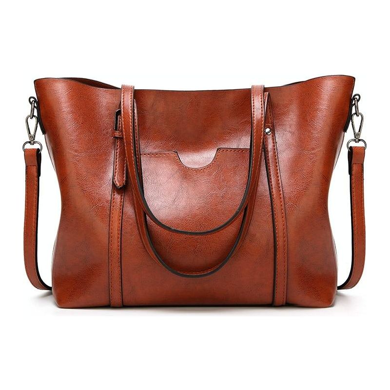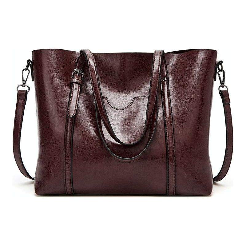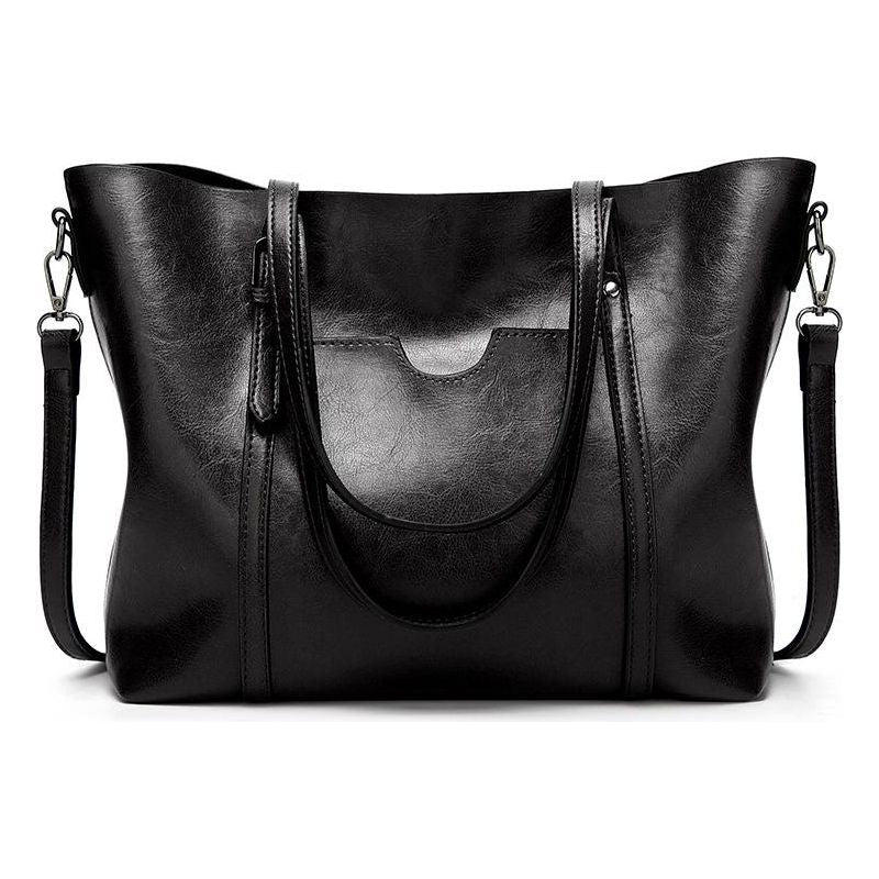 Stylish All-Match Leather Handbag - Wax Finish - Black