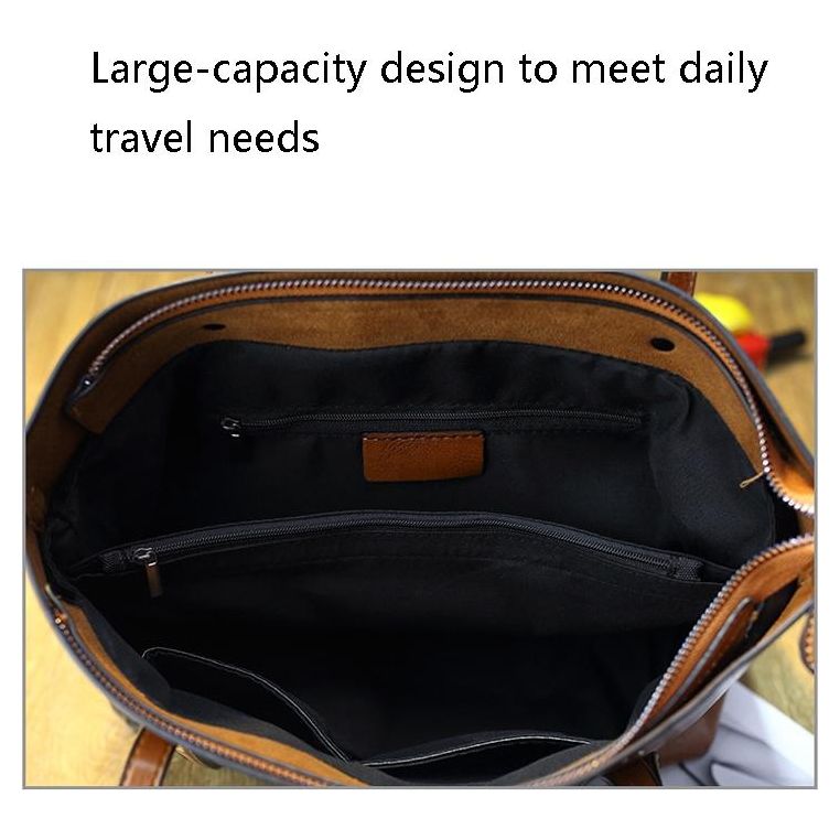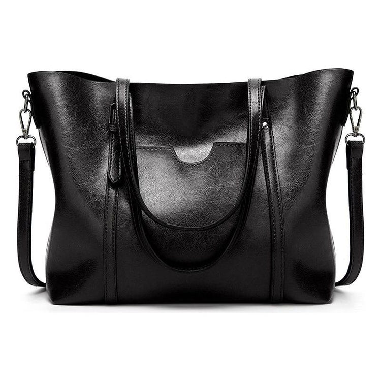 Stylish All-Match Leather Handbag - Wax Finish - Dark Grey