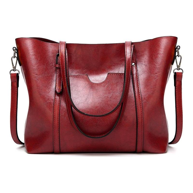 Stylish All-Match Leather Handbag - Wax Finish - Wine Red