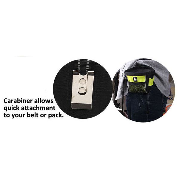 You can attach your Dog's leash, secure your water bottle (included) and store your keys, mobile phone and waste bags in the two waterproof zipper pockets.