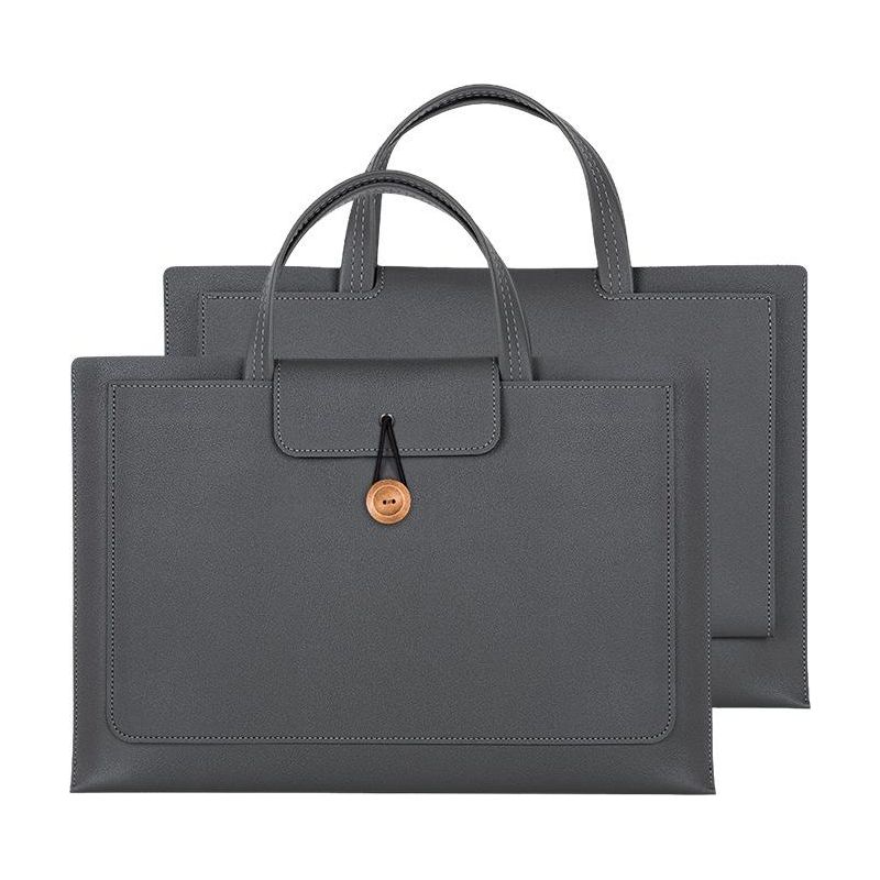 Waterproof Elastic Button Laptop Handbag - Pu Material - Grey - 15.4/16 Inch