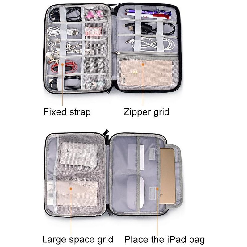 Waterproof Multi-Function Storage Bag For Digital Accessories - L - Black
