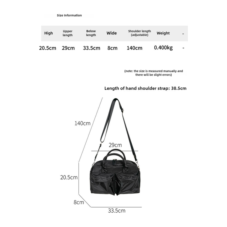 • Versatile Design: Comes with a 140cm adjustable shoulder strap for crossbody wear and 38.5cm handles for hand-carrying.