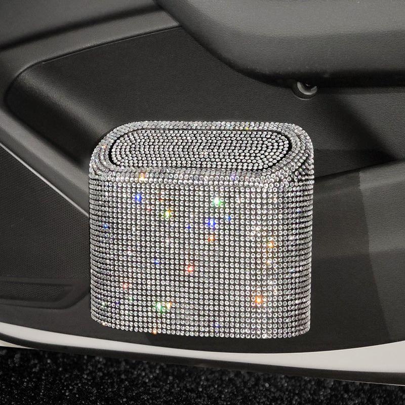Sparkly Rhinestone Car Trash Can - Diamond Auto Garbage Bin Organizer