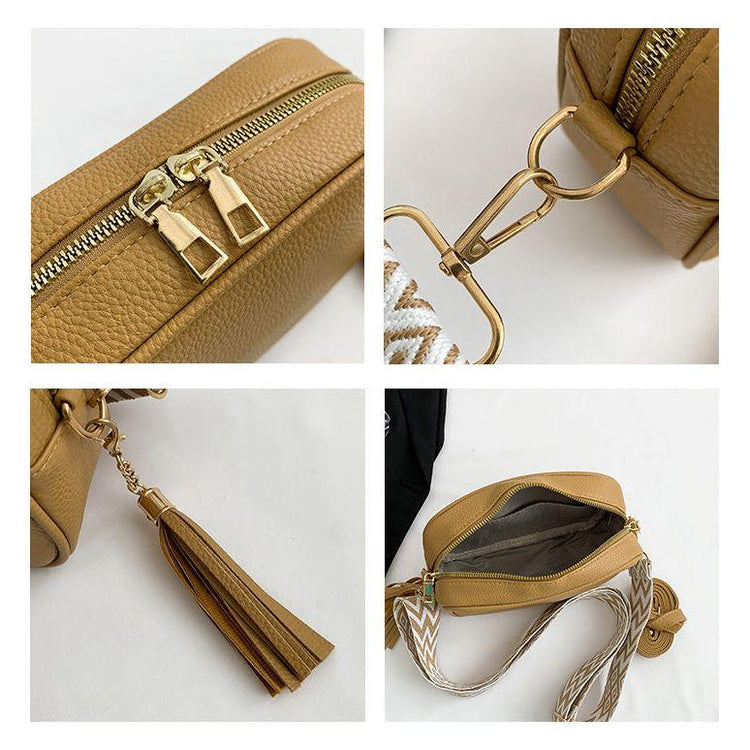 Trendy Crossbody Shoulder Bag with Tassel Accent - Compact and Stylish