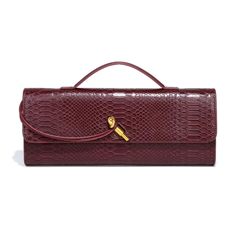 Wine Red Elegant PU Leather Clutch Bag with Snake Print Design - Multi-color Options