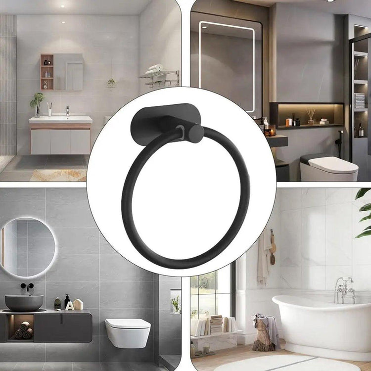 Enhance your bathroom's style and functionality with these black non-perforated stainless steel towel rings. Crafted from high-quality SUS 304 stainless steel, these rings are designed to withstand daily use without rusting. The non-perforated, adhesive-based installation method allows for a quick, damage-free setup, making them ideal for smooth surfaces like tiles or glass. Their sleek black finish offers a modern look, while the oval shape is both space-saving and aesthetically pleasing. Perfect for organising towels in bathrooms or toilets, these rings are durable and easy to maintain.