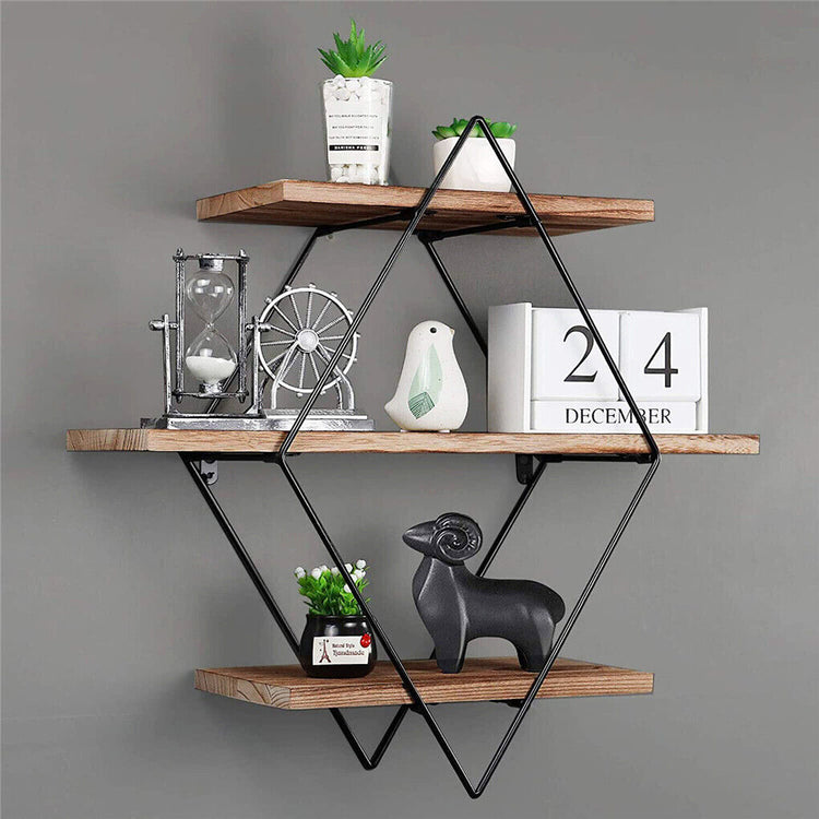 3 Tier Diamond Metal Floating Shelves Wall Mounted Display