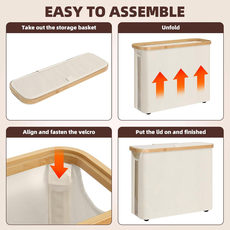 CARLA HOME Toilet Paper Storage Basket Holds Up to 12 Rolls with Bamboo Lid and Handle for RV Closet (White)