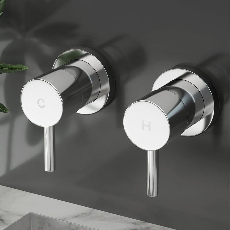 Cefito Basin Twin Tap Wall Round Brass Faucet Shower Bathtub Chrome