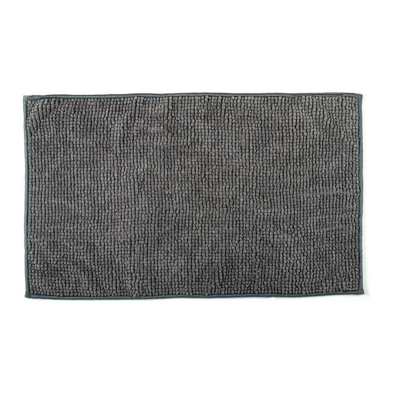 Microfiber Shower & Bathroom Bath Mat Non Slip Soft Pile Design (Dark Grey)