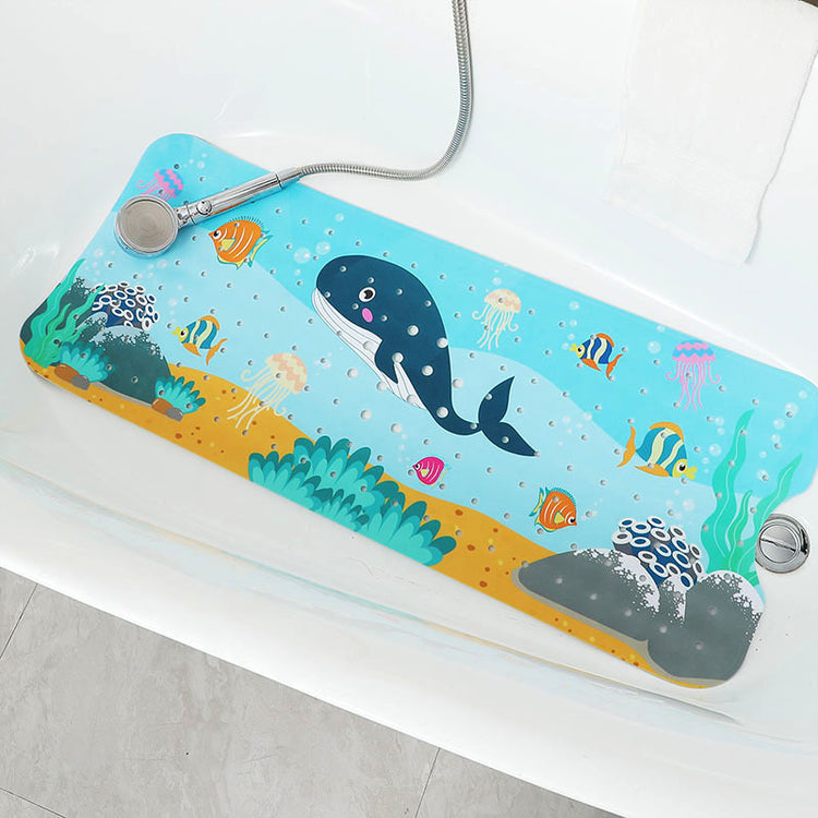 Non-Slip PVC Bath & Shower Mat with Suction Cups and Drainage Holes - Cartoon Ocean Theme