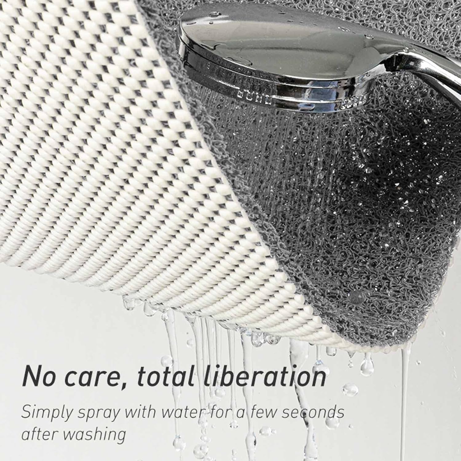This soft bathtub mat is a neutral color that matches any bathroom and has a special woven texture design that allows water to flow through immediately, keeping the feet clean.