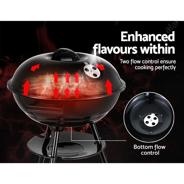 Grill and smoke your food in exceptional style with our outstanding Grillz Portable BBQ Smoker. Comprising a chrome-coated steel BBQ grill set on a sturdy frame with a handy cover, the thick metal body renders the smoker excellent heat retention and heat distribution properties. Ensuring all the natural flavours and delights of your cooking are absorbed back into the meats for its delectable goodness. Furthermore, the two flow controls also helps to ensure your cooking always turns out sumptuous and mouthwatering. Inside, the smoker has grease collection tray and a convenient charcoal rack sits neatly beneath the smoker for hassle-free use. The smoker also features two-sided handles for easy carry. Not least, the two wheels enables the smoker to be carted around for outdoor gatherings, parties, picnics or any special event.