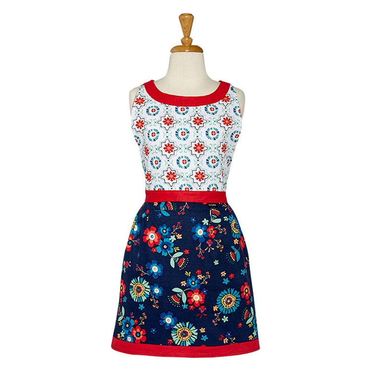 This Fiesta Ladies Women Kitchen / BBQ Cotton Apron by Ladelle is everything you need to create a chic cooking space. Enjoy cooking with this stylish kitchen essentials which features a print design inspired by the beautifully vibrant streets of Spain and will bring colour to the heart of your kitchen. Comes in vibrant White, Navy, Green, Red, Coral, Teal, Blue, and Yellow colour hues. It is made from high quality and easy care 100% Cotton fabric. 100% AZO free dyes. Made to European Quality Standards.