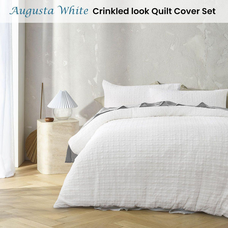 The Augusta White Ruched Quilt Cover Set by Accessorize is made from a Super Soft Double Layer Gauze fabric that mixes the softness of polyester with the crinkled look of linen allowing you to change up your room without the expense of buying a new cover. The Polyester Gauze is composed of two thin layers of cotton woven together by invisible stitches at regular intervals giving it a light airy feel. With its light breathable properties, this polyester gauze offers supreme comfort.