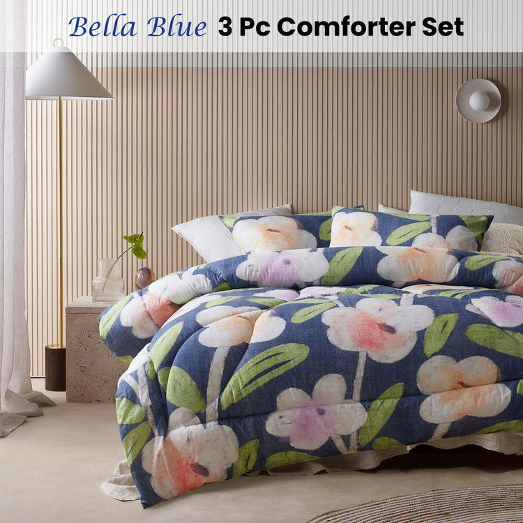 Accessorize Bella Blue Floral 3 Piece Comforter Set Double