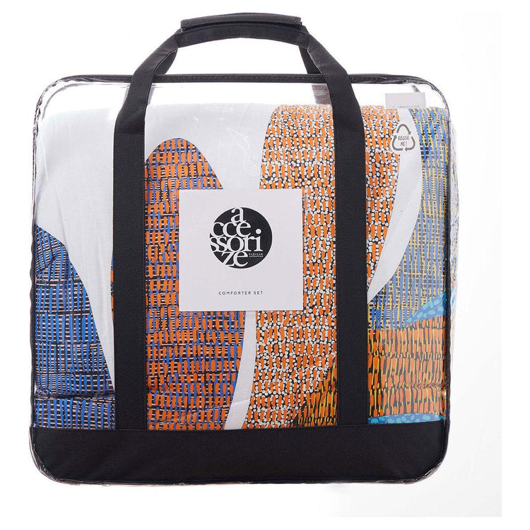 The Sorrel White Foliage 3 Piece Comforter Set by Accessorize brings vibrant energy to your bedroom. Featuring an eye-catching foliage design with bold autumn-inspired hues of white, brown, black, blue, red, and purple tones, this set makes a striking statement. The comforter is made from soft, breathable fabric, ensuring a cosy and restful sleep. Complete with matching pillowcases, this set effortlessly combines contemporary style with comfort, making it a perfect addition to any modern home.