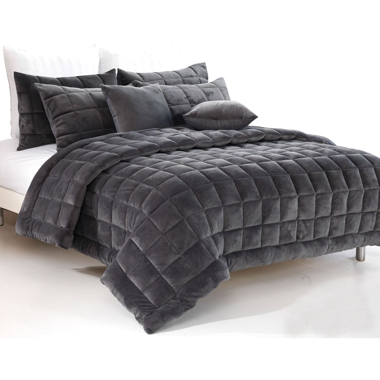 Add a little magic of comfort and warmth to your bedroom with this cosy Augusta Faux Mink Quilt/Comforter Set Charcoal by Alastairs which features a quilted square shapes design in neutral solid colour tone. It is made from easy care and soft feel Polyester and Polyester fill fabric.