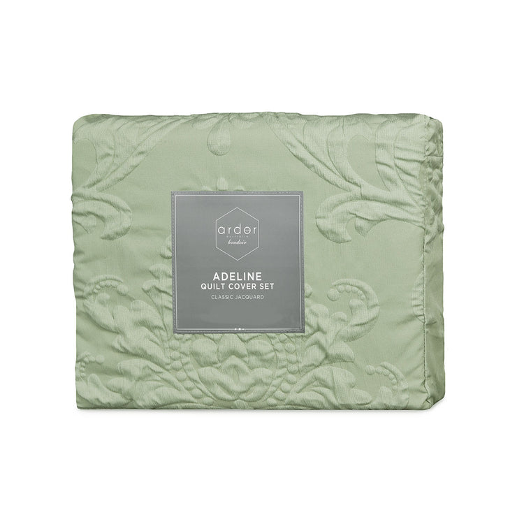 Ardor Adeline Sage Jacquard Damask Quilt Cover Set, a timeless blend of vintage charm and elegance. Inspired by classic motifs, this design adds depth and character to your bedroom decor. Whether you are going for something soft and elegant or simply want a change of scenery, this set offers a beautiful blend of comfort and classic style. It is made from quality polyester fabric for long lasting use.