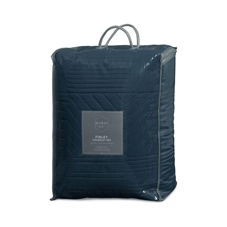 The Finley Navy 3 Pcs Quilted Coverlet Set Queen/King by Ardor features elegant & modern geometric pattern is a sophisticated addition to your bedroom. In a classic Navy hue and aesthetically pleasing quilted squares, Finley is a perfectly understated style. It is made from quality and soft touch microfibre fabric and polyester fill for a relaxing and cosy night's sleep.