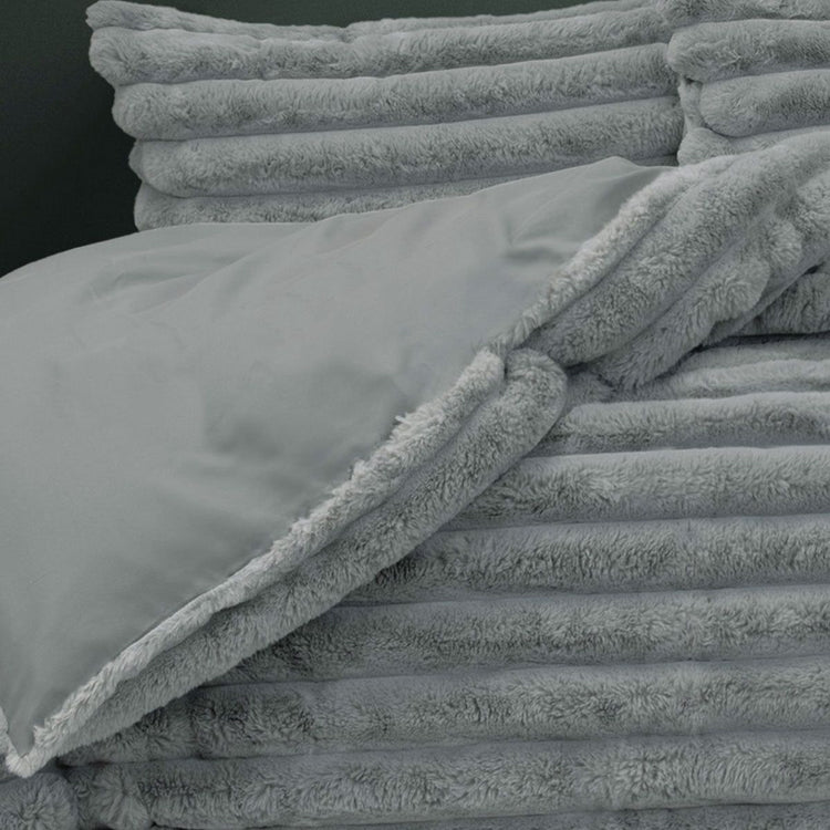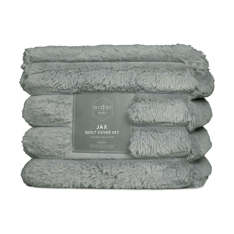 Ardor Jax Grey Chunky Faux Fur Quilt Cover Set Queen
