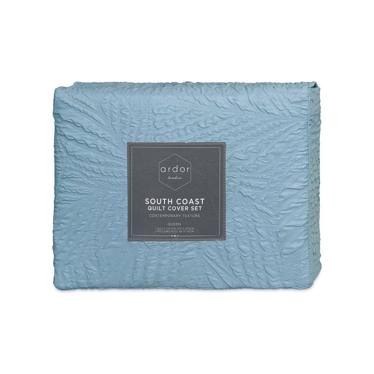 Ardor South Coast Pale Blue Embossed Quilt Cover Set King