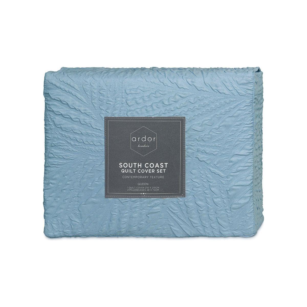 Ardor South Coast Pale Blue Embossed Quilt Cover Set Queen