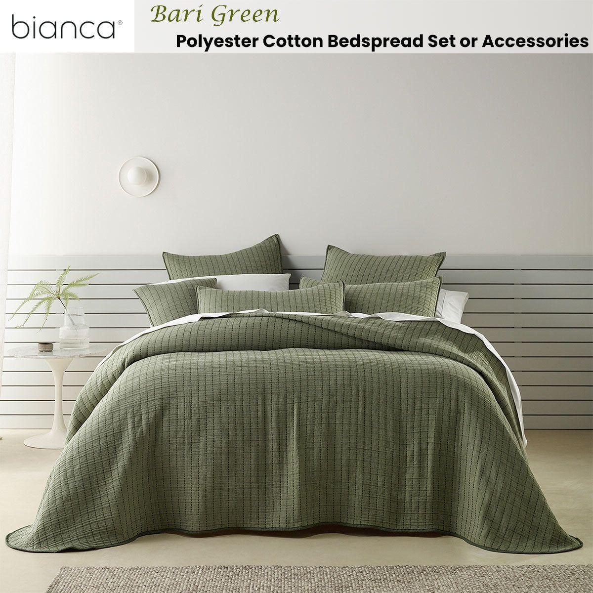 This Bari Green Polyester Cotton Bedspread Set by Bianca is an easy-care bedspread that requires no ironing and becomes softer after laundering. This design is cleverly contrasted with dark green stitching and features a 200gsm polyester fill for added comfort and warmth. On trend in colour and style, this lightweight bedspread is perfect for those warmer months. Complete the look with matching Cushion at an extra cost.