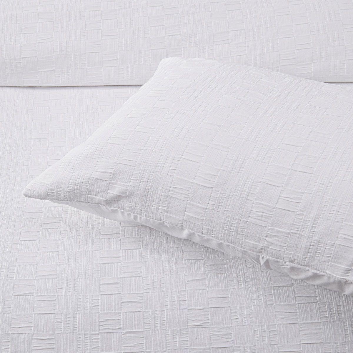 This gorgeous Cosmo White Soft Chenille Geometric Quilt Cover Set by Bianca features a stunning, geometric design. The small squares are woven in super soft chenille fabric. This clean and crisp design is one that will complement all bedrooms. Finish the look with matching accessories.