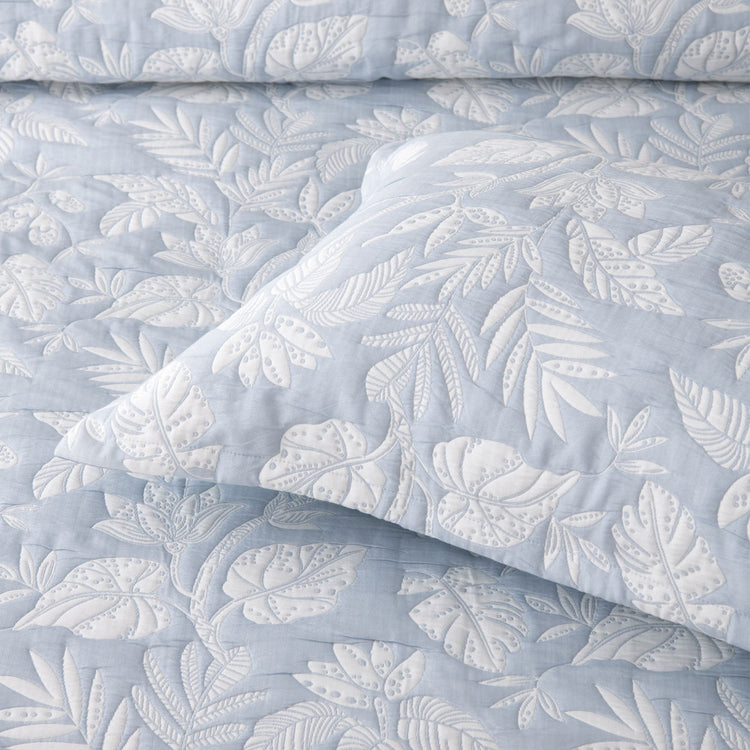 The soft blue and white tones paired with a detailed jacquard botanical design gives this bedspread a timeless, graceful look. The pattern adds texture without overwhelming the room, making it a lovely match for both traditional and modern interiors. Finish off the look with coordinating accessories available for an additional cost.