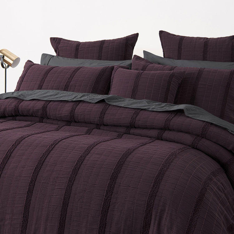 Bianca Malua Grape Jacquard Striped Quilt Cover Set Queen