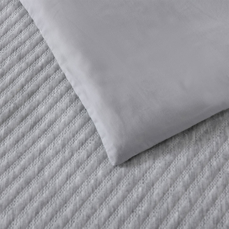 The Bianca Pesaro Grey Polyester Cotton Quilt Cover Set brings timeless simplicity and everyday comfort to your bedroom. Featuring a subtle diagonal pattern in soft grey, it offers a calm and contemporary aesthetic that's easy to style. Made from a durable polyester-cotton blend, this set balances softness with practicality, perfect for creating a neat, inviting, and effortlessly refined sleeping space.