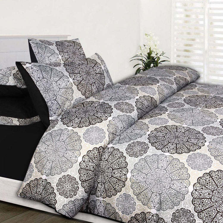 The Jake Black Quilt Cover Set by Big Sleep is a statement piece for any bedroom, featuring an intricate mandala design printed in grey, black, taupe, and white hues. This set is perfect for those who appreciate the blend of modern style with classic comfort. The contrasting hues add a touch of elegance, while the quality fabric ensures a soft touch and a cozy sleep experience. It's an ideal choice for creating a refined bedroom ambiance with a modern twist.