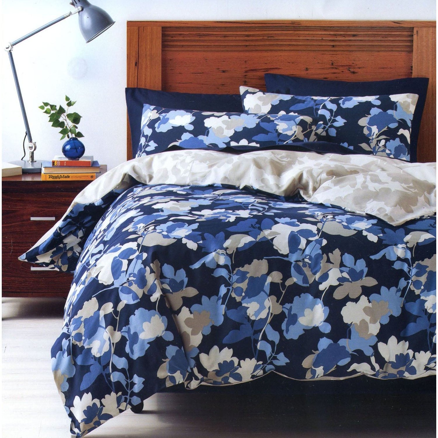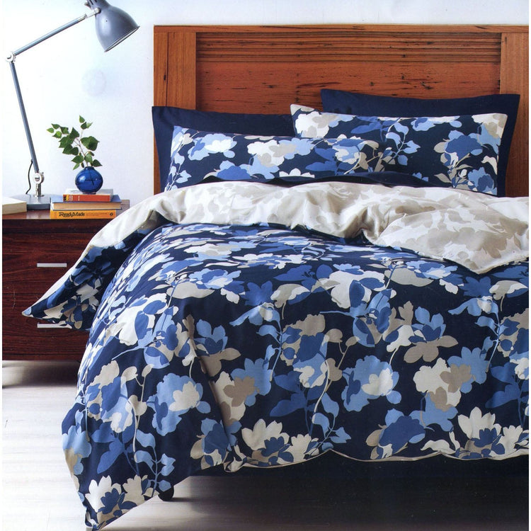 Brighten up your bedroom with this printed Floral Sisley Quilt Cover Set by Deco - Queen in Stone, Blues and White background. Made from an easy care polyester cotton fabric by Deco.