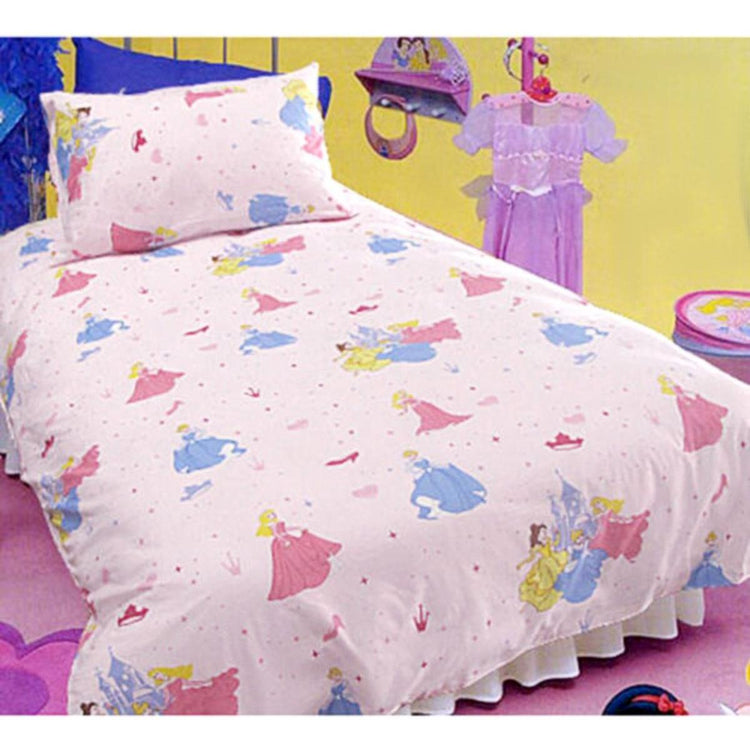 This Disney Princess Pink Quilt Cover Set Single will instantly brighten up the bedroom of your little princess. The quilt cover features lovely princesses design printed in vibrant colour tones of pink, yellow, blue, white, and grey that will bring a stylish touch to your kid's bedroom. It is made from quality and soft touch Polyester Cotton fabric with easy care properties.