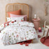 Add some imagination to your kid's bedroom with Story Time White Cotton Digital Printed Quilt Cover Set by Happy Kids. The design features animals such as bunny, squirrel, and hedgehog accented with foliage and mushroom printed in soft tones of black, white, green, pink, grey, and brown that will add a dreamland vibe. It is made from natural breathable cotton that is soft against the skin for a cosy night's sleep.