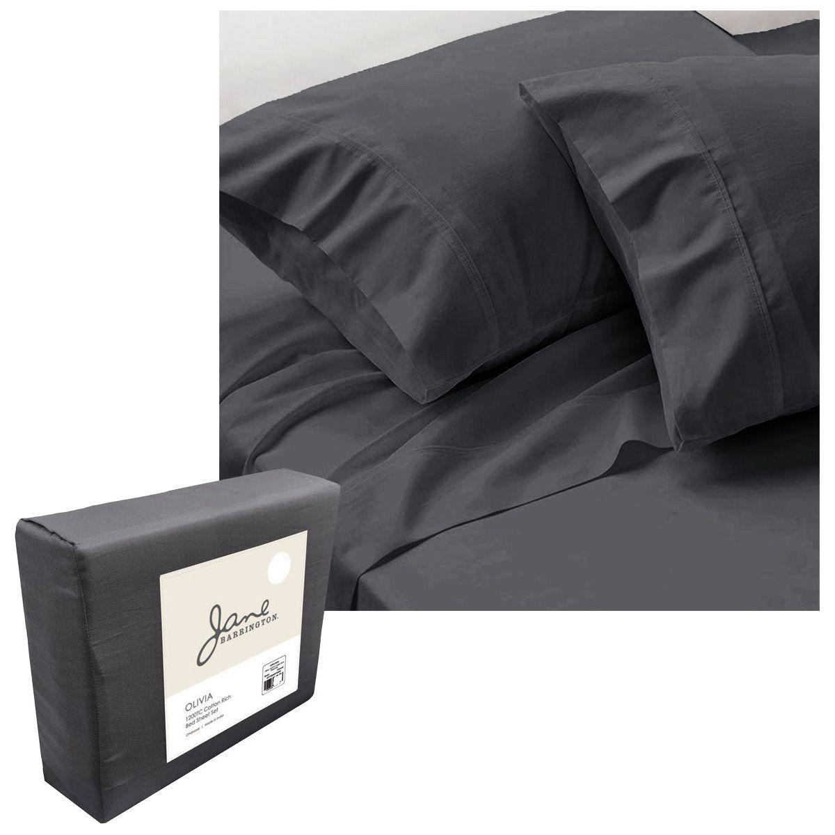 Jane Barrington 1200TC Olivia Cotton Rich Sheet Set 40cm Wall Charcoal King