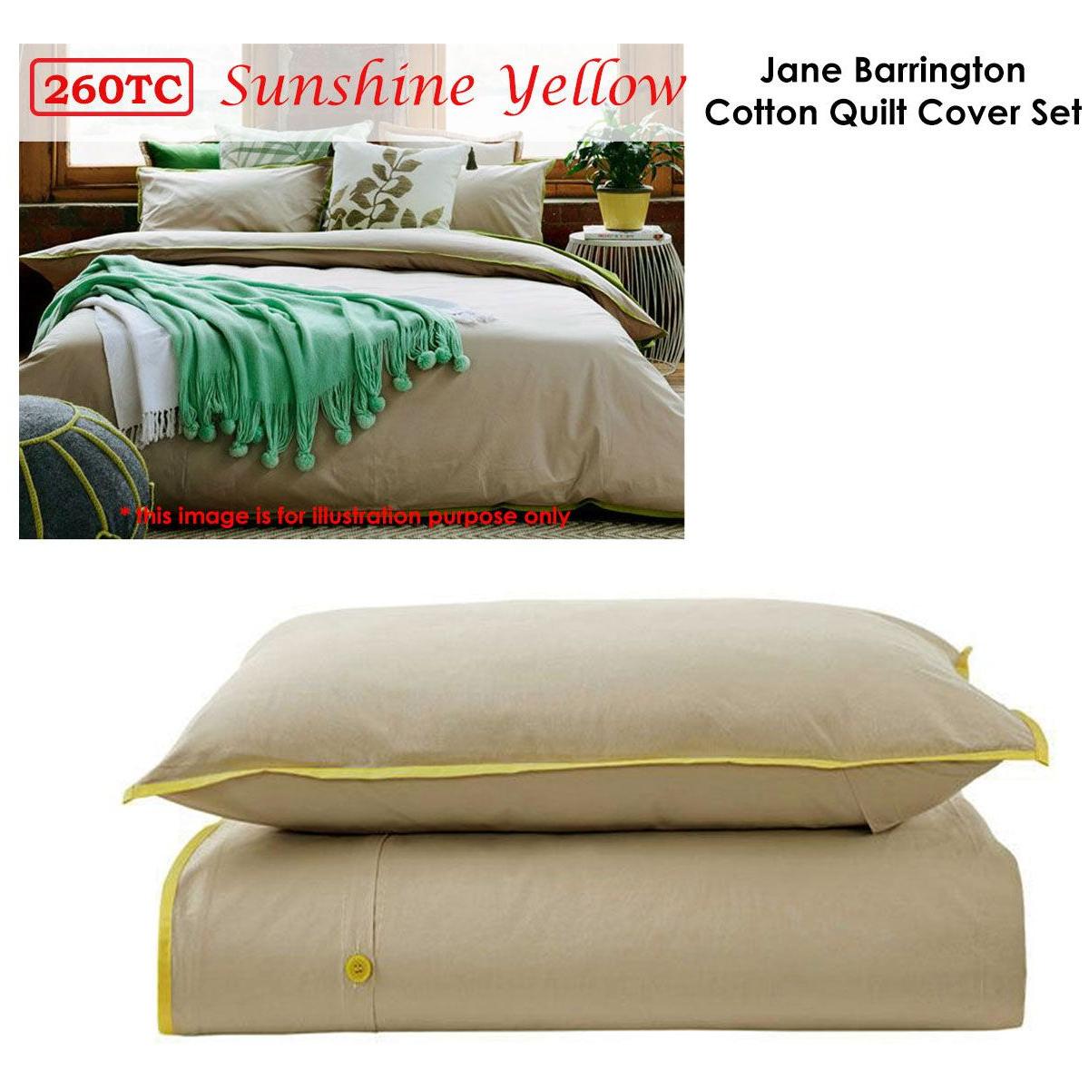 This Jane Barrington 260TC 100% Cotton Quilt Cover Set Taupe/Sunshine Yellow is a quick and cost-effective option to makeover your living space. It features solid colour design in soft colour tones of taupe and sunshine yellow for a more polished and welcoming bedroom vibe. Made from quality and soft touch 100% Cotton fabric in 260 thread count that is soft against the skin for a relaxing night's sleep.