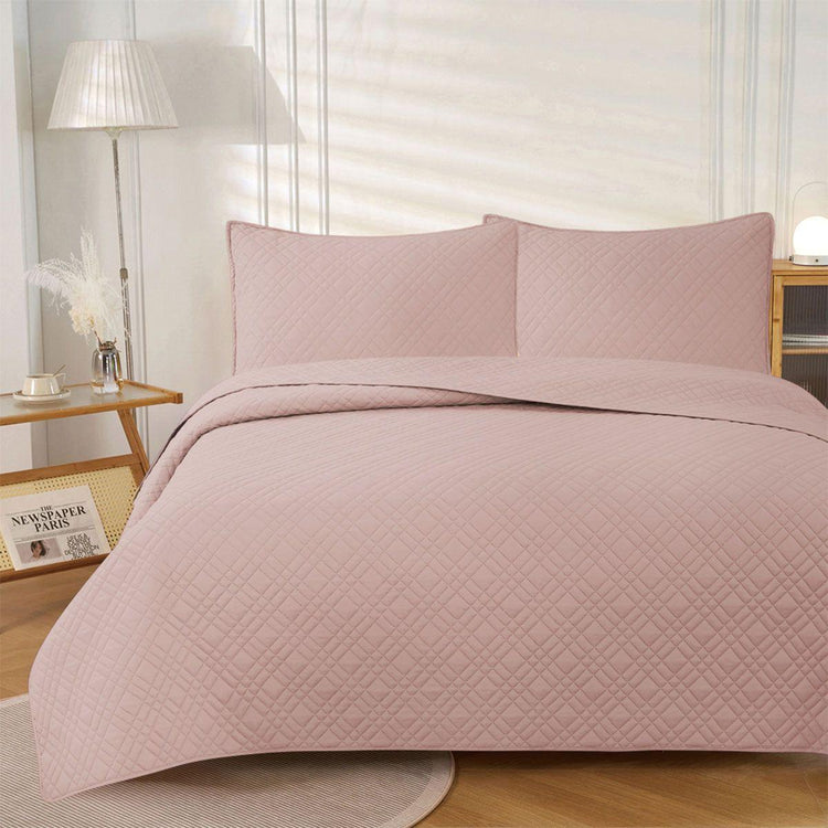 Upgrade your sleep haven with the Morris Blush Ultrasonic Embossed Lightly Quilted Reversible Coverlet Set by Jane Barrington. This set features ultrasonic embossed design that not only adds a contemporary touch to your bedroom but also offers a tactile delight. The rich blush hue serves as a versatile backdrop, complementing any decor style while providing a statement of sophistication. Made from microfiber fabric and microfiber filling, this coverlet is cozy, perfect for any season. Whether it's the main attraction or a subtle addition, this coverlet set is sure to enhance the look and feel of your sleeping space.