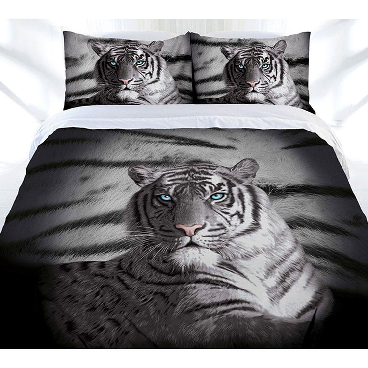 This Blue Eyes Stripes Quilt Cover Set by Just Home will add excitement to your bedroom for a wild interior look. It features a dusk tiger print design in white, grey, aqua, and black colour tones that will reflect your wild side. It is made from soft feel and easy care Polyester Cotton fabric for a comfortable night's sleep.