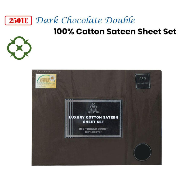 Looking for the perfect sheets to keep you comfortable at night? Look no further than our luxurious 250TC 100% Cotton Sateen Sheet Set Dark Chocolate Double by Kingtex. This can add an extra layer of comfort and warmth in your sleep. It features solid colour tone design in soft hue that can add a touch of elegance to the overall design of any bedroom space. It is made from 100% cotton fabric with easy care properties and long lasting durability.