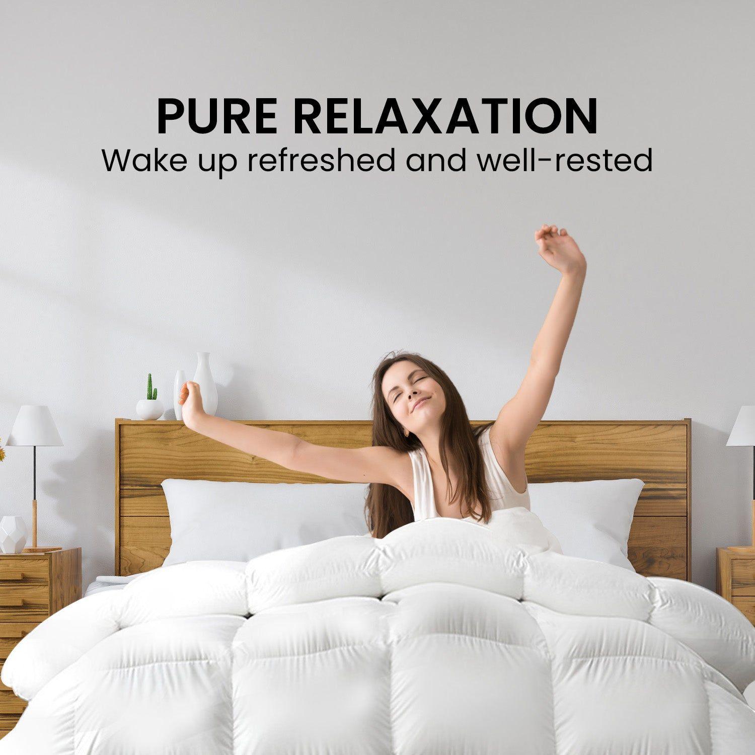 Wake up feeling relaxed and refreshed every day with the Laura Hill 500GSM Duck Down Feather Quilt. This quality comforter is crafted with strong double-stitched hems and hypoallergenic, breathable material to ensure a completely comfortable and highly durable quilt.