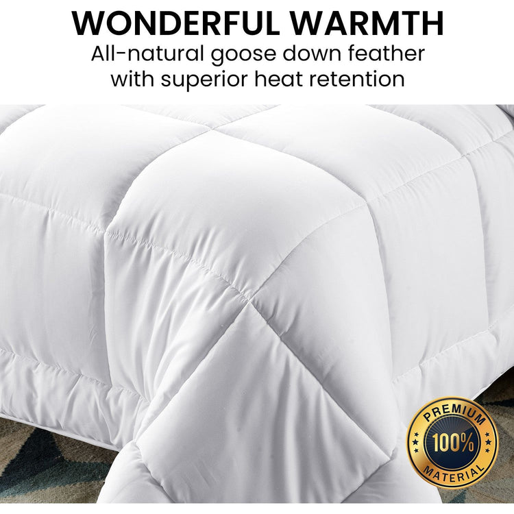 With its ultra-soft, hypo-allergenic, and breathable material, the Laura Hill Goose Down Feather Quilt will make for a great addition to any bedroom!