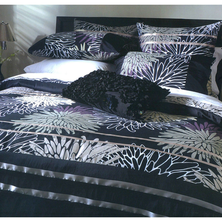 This Astrid Quilt Cover Set by Paxton & Wiggin will bring a touch of elegance and inviting look to your bedroom with its striking faux silk design with panels of oversized floral print. Deep pleats reveal layers of satin ribbon. In white, black, taupe, gold, and aubergine colour tones that will create a stylish pattern and texture to your bedroom. It is made from quality and soft to the skin Polyester Cotton fabric with easy care properties.