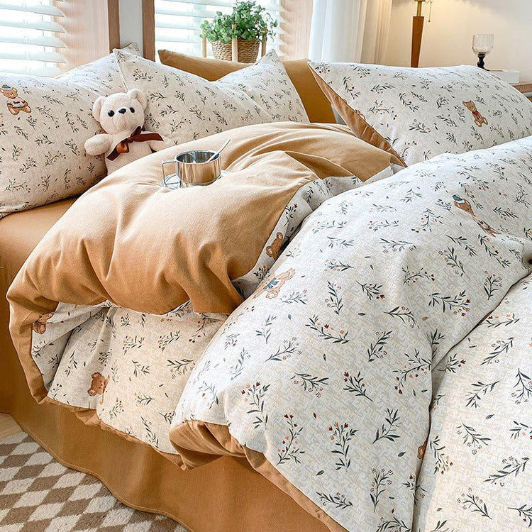 Phil Bear Thick Brushed Cotton 4-Piece Bed Sheet Set (1.5m Bed) - Fits 200x230cm Duvet