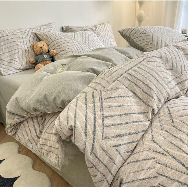 Pinstripe Thick Brushed Cotton 4-Piece Bed Sheet Set (1.5m Bed) - Fits 200x230cm Duvet